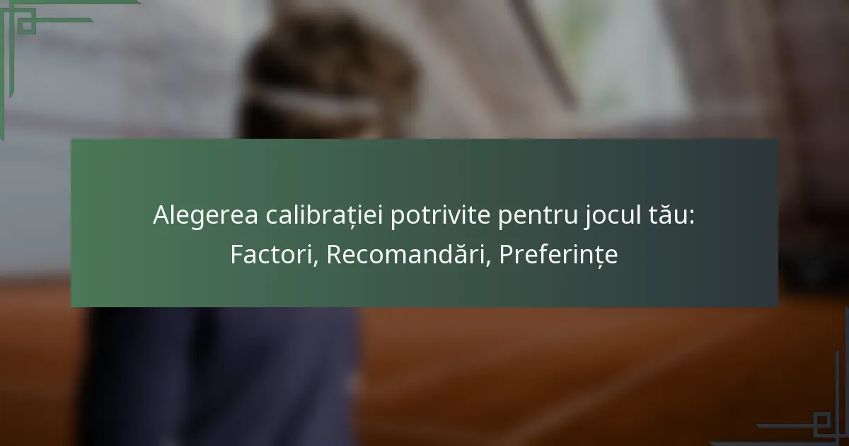 Alegerea calibrației potrivite pentru jocul tău este esențială pentru optimizarea performanței și îmbunătățirea plăcerii. Factori precum nivelul de abilitate, tipul de joc, preferințele personale și condițiile de mediu joacă un rol semnificativ în această decizie. Pentru începători, calibrațiile mai ușoare sunt adesea recomandate, deoarece oferă un control mai bun și o tensiune redusă, făcând jocul mai accesibil.